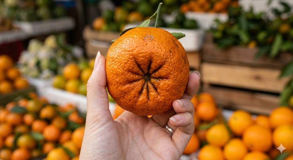 Thứ ba, hãy kiểm tra phần rốn quả (phần đáy). Nếu rốn quả lõm sâu vào trong, đây thường là dấu hiệu của quả đã chín già, tích tụ đủ lượng đường và cực kỳ ngọt. Nếu rốn quả lồi lên, quả đó thường sẽ chua hơn.