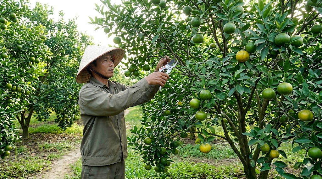 Phòng trừ sâu bệnh: Cây có múi rất dễ bị tấn công bởi sâu vẽ bùa, nhện đỏ và đáng sợ nhất là bệnh vàng lá gân xanh (Greening). Cần cắt tỉa cành thông thoáng sau mỗi vụ thu hoạch và sử dụng chế phẩm sinh học định kỳ để bảo vệ vườn cây.