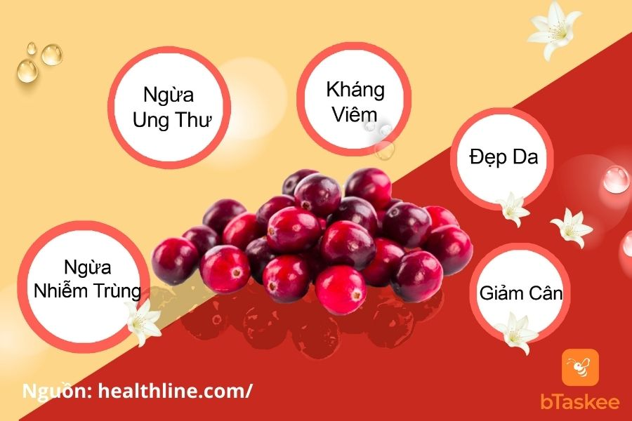 4. Bảo vệ sức khỏe răng miệng: Tương tự như cơ chế ở hệ tiết niệu, các hoạt chất trong quả ngăn không cho vi khuẩn bám vào răng, giảm sự hình thành mảng bám, ngăn ngừa sâu răng và các bệnh về nướu (lợi).